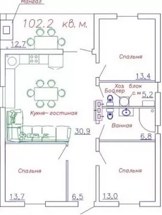 В доме три спальни, большая кухня гостиная, котельняя, просторная ванна и терраса . Двор и отмостка  вокруг дома выложены плиткой,  двор по периметру закрыт профнастилом, калитка и  ворота.