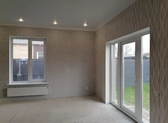 Новый дом с хорошим ремонтом, качественная и дорогая входная дверь с зеркалом. Ремонт выполнен в светлых тонах, в кухне гостиной, сан узле и прихожей тёплый пол, натяжные потолки.