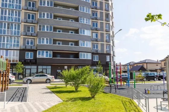 На первых этажах находятся коммерческие помещения, не выходя из комплекса можно приобрести всё необходимое!