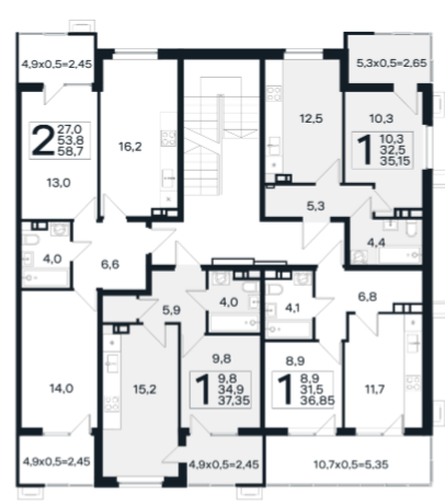 Продается 2-х комн. новостройка, 58.7 кв.м., 4/4 эт