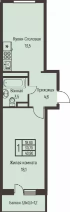 Продается однокомнатная новостройка, 41 кв.м., 2/3 эт