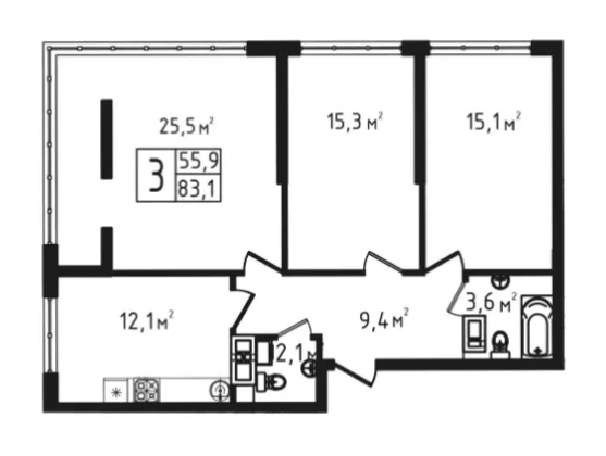 Продается 3-х комн. квартира, 83.1 кв.м., 6/9 эт