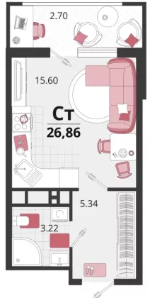 Продается Студия новостройка, 26.86 кв.м., 10/17 эт