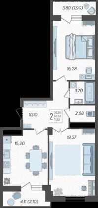 Квартира в шикарном жилом комплексе, планировка на две стороны с большими комнатами и двумя лоджиями!