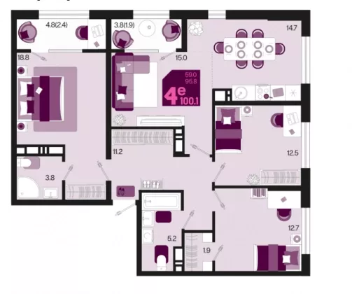 Продается 4-х комн. новостройка, 100.1 кв.м., 17/18 эт