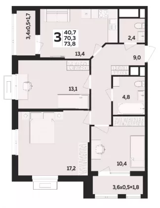 Продается 3-х комн. новостройка, 73.8 кв.м., 8/16 эт