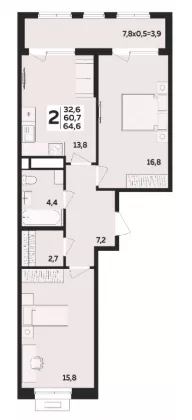 Продается 2-х комн. новостройка, 64.6 кв.м., 12/16 эт