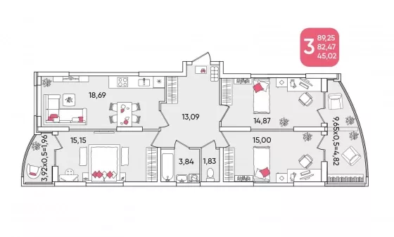 Продается 3-х комн. новостройка, 89.25 кв.м., 3/24 эт