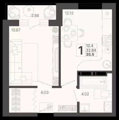 Продается однокомнатная новостройка, 36 кв.м., 5/11 эт
