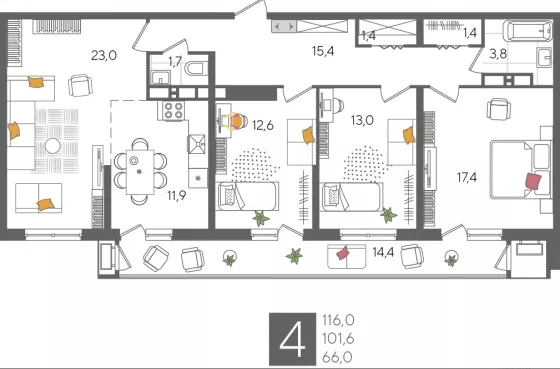 Продается 4-х комн. новостройка, 116 кв.м., 22/24 эт