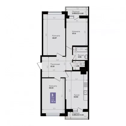 В продаже трёхкомнатная квартира  кухня 16,88 м2, просторная прихожая, раздельный  санузел,  большие окна панорамное остекление на лоджиях!!! Семейная ипотека 6%.