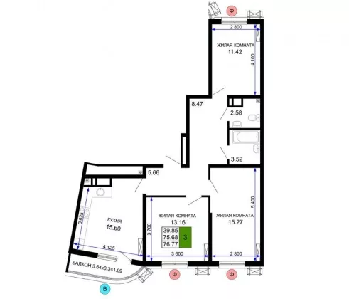 Продается 3-х комн. новостройка, 76.77 кв.м., 9/24 эт