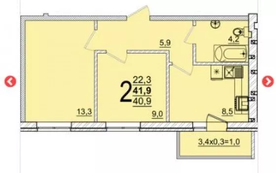Продается 2-х комн. квартира, 40.9 кв.м., 2/5 эт