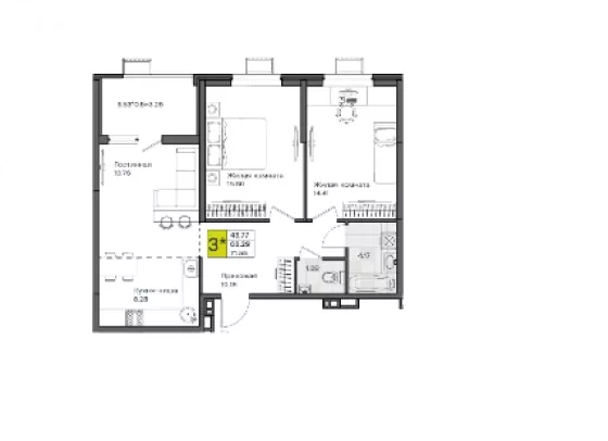 Продается 3-х комн. новостройка, 71.55 кв.м., 7/8 эт