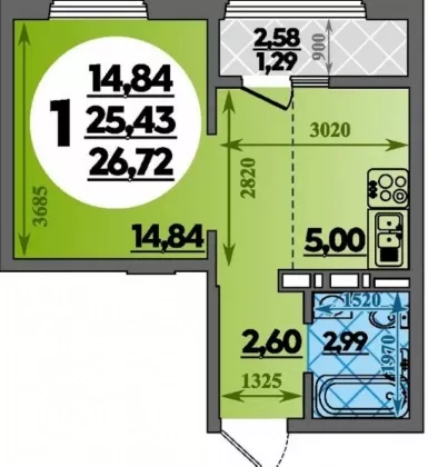 | Площадь, кв.м. | 26.72 |