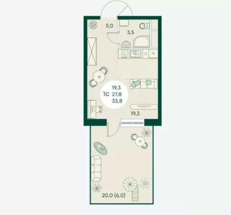 Продается однокомнатная новостройка, 33.8 кв.м., 2/15 эт