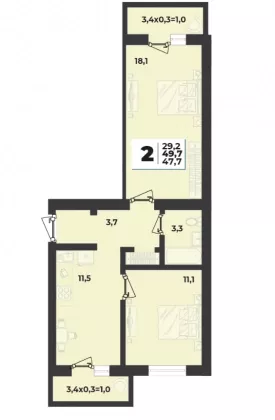 Продается 2-х комн. новостройка, 49.7 кв.м., 3/5 эт