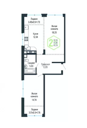 Продается 3-х комн. новостройка, 65.39 кв.м., 7/24 эт
