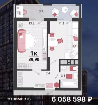 | Жилая площадь | 13.8 |