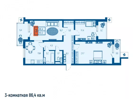 | Площадь, кв.м. | 86.4 |