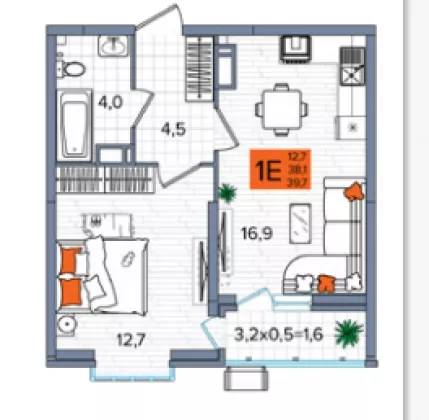 Продается однокомнатная квартира, 39.7 кв.м., 4/17 эт