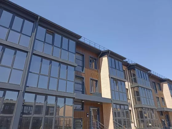 Новый проект в европейском стиле. Малоэтажная постройка, широкие и зеленые дворы, большое расстояние между домами, детские и спортивные площадки.