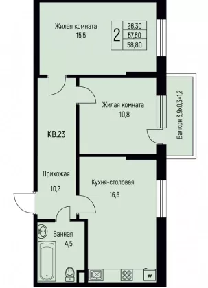 Продается 2-х комн. новостройка, 58.8 кв.м., 1/3 эт