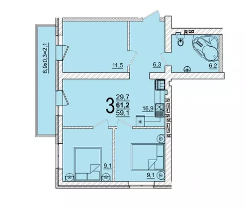 Продается 3-х комн. квартира, 61.2 кв.м., 3/5 эт