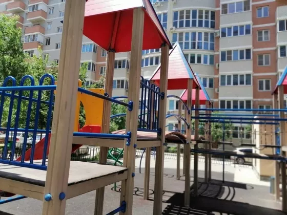 Во дворе много парковочных мест, между домами большое расстояние на котором расположены детские и спортивные площадки. Район молодой и новый, здесь уже поднялись молодые деревца, которые расположены вдоль двора ,посидеть в беседке в холодке , подышать свежим воздухом можно каждому жильцу. Для детей красочные площадки на любой вкус.