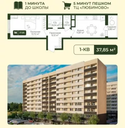 Рядом с домом новые школы, детские сады, парковые зоны с поющим фонтанами.