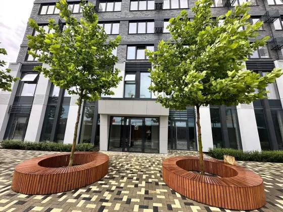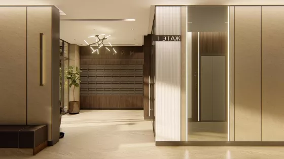 Дизайнерские входные группы, с современными лифтами, на первом этаже колясочные, веллопарковки.