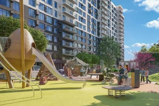 Дом имеет современный эстетичный фасад, широкие витражные и панорамные окна с защитой от ультрафиолета: яркого солнца и ветра, подземный паркинг с кладовыми.