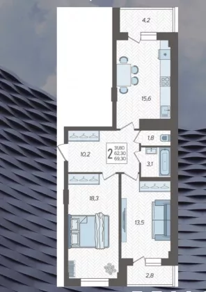 | Площадь кухни, кв.м. | 15.6 |