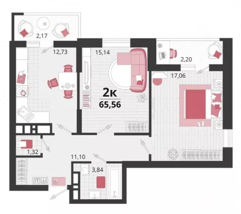 Продается 2-х комн. новостройка, 65.56 кв.м., 11/18 эт