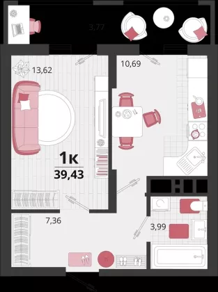 Продается однокомнатная новостройка, 40 кв.м., 7/18 эт