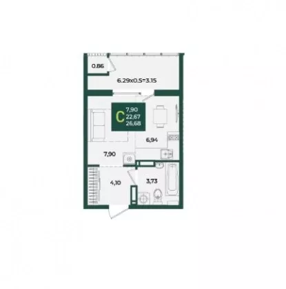 Продается Студия новостройка, 26.7 кв.м., 18/18 эт