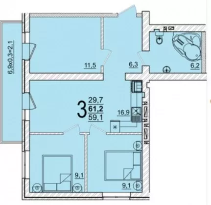 Продается 3-х комн. новостройка, 61.2 кв.м., 4/5 эт