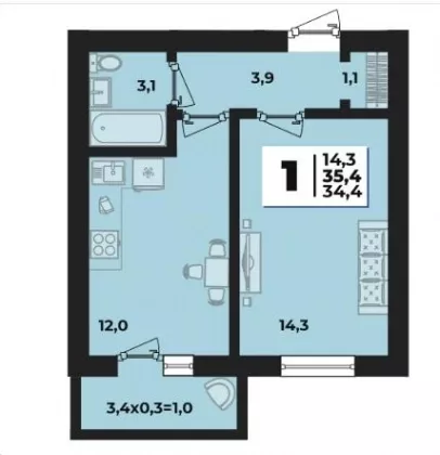 Продается однокомнатная новостройка, 35.4 кв.м., 4/5 эт