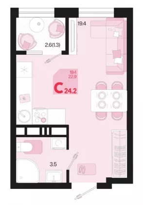 Продается Студия новостройка, 24.2 кв.м., 5/18 эт
