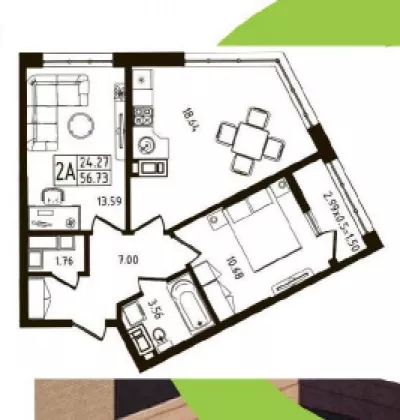 Продается 2-х комн. новостройка, 56.73 кв.м., 4/8 эт