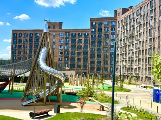 - Просторная придомовая территория: включает зоны отдыха для взрослых и детей, спортивные площадки и арт объекты.