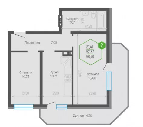 В избранное Двухкомнатная квартира