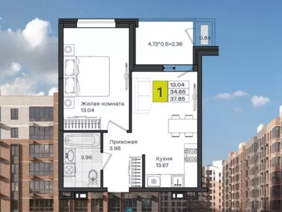 Продается однокомнатная новостройка, 38 кв.м., 7/8 эт