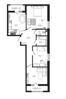 Продается 3-х комн. новостройка, 79.9 кв.м., 3/4 эт