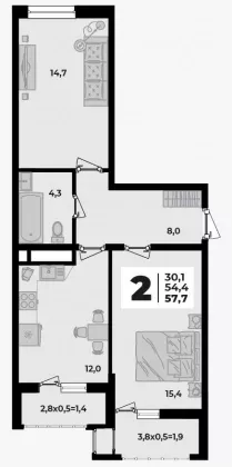 Продается 2-х комн. новостройка, 55.9 кв.м., 3/8 эт