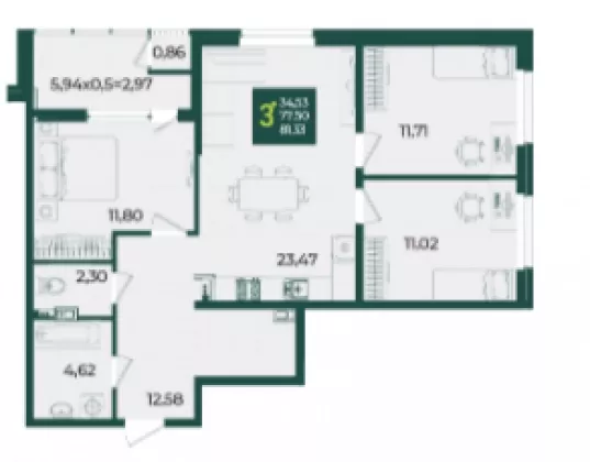 | Площадь, кв.м. | 81.33 |