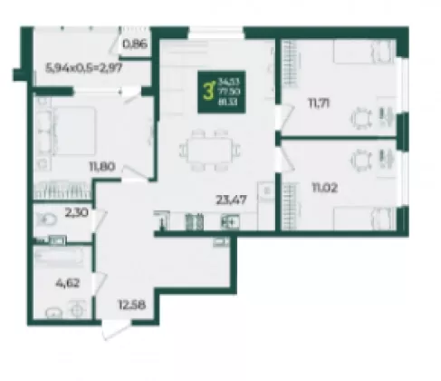 Продается 3-х комн. новостройка, 81.33 кв.м., 6/18 эт