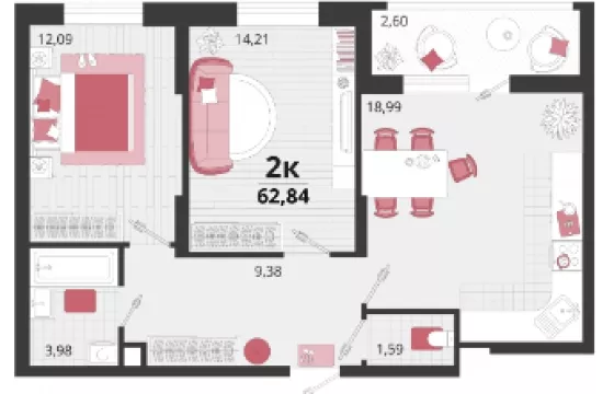 Продается 2-х комн. новостройка, 62.84 кв.м., 18/18 эт