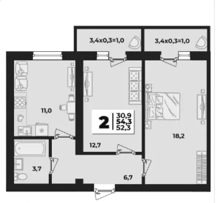 | Площадь, кв.м. | 54.3 |