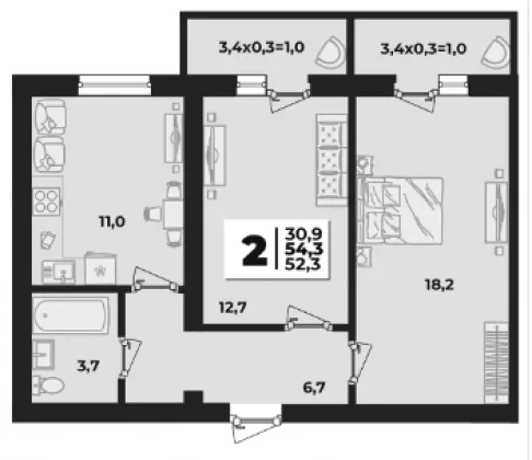 Продается 2-х комн. новостройка, 54.3 кв.м., 5/5 эт